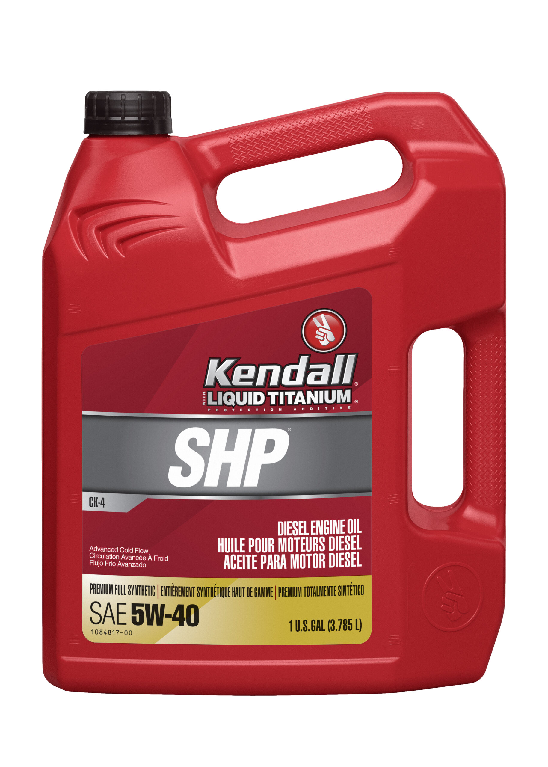 Kendall® SHP Diesel Full Synthetic Engine Oil is a premium quality, full-synthetic engine oil developed for use in four-stroke cycle diesel engines operating under extreme temperature conditions. It meets API CK-4 performance requirements for use in modern low-emission engines designed to meet 2007 and later EPA on-highway exhaust emissions standards, and is backward serviceable for use in older diesel engines. It is specially formulated for compatibility with exhaust aftertreatment systems using diesel particulate filters (DPF), diesel oxidation catalysts (DOC) and/or selective catalytic reduction (SCR). The full-synthetic formulation and SAE 5W-40 viscosity grade provide excellent low-temperature properties for better performance in harsh winter climates.