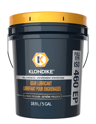 KLONDIKE Full Synthetic Industrial ISO 460 EP Gear Lubricant is a premium synthetic formulation designed for maximum performance and protection in many types of industrial bearing and gear applications operating in very heavy duty and shock-loaded conditions. KLONDIKE Full Synthetic Industrial EP Gear Lubricant holds a tenacious lubricant film on metal surfaces, maximizing gear protection and ensuring extended service life in the most arduous applications. Outstanding low temperature fluidity and low coefficient of friction offers high operating efficiency and energy saving potential. KLONDIKE Full Synthetic Industrial ISO 460 EP Gear Lubricant excels in the lubrication of heavily loaded enclosed gear drives and reducers on drives of all sizes. Suitable for use with bath, splash, circulating, and spray-type lubrication systems.
