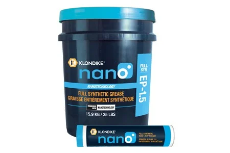KLONDIKE nano Full Synthetic EP-1.5 Grease represents the pinnacle of modern lubricant design. Innovative nanotechnology enhances the performance of this lubricant into an area previously unseen in the field of industrial grease products.KLONDIKE nano Full Synthetic EP-1.5 Grease brings a unique, technically advanced grease offering to the industrial and heavy equipment market. Proprietary nanotechnology is presented into a commercial lubricant in the form of multi-layered, spherical, closed caged particles of tungsten disulfide. The unique spherical tungsten disulfide nanoparticles show outstanding resistance to extreme temperatures (-270°C to 450°C), heavy shock loading (5,076,000 PSI) and extreme pressure (4,263,000 PSI). This versatile formulation operates under even the most extreme operating conditions, including high and ultra-low temperatures, high pressure and high vacuum, high load, high rotating speed, high radiation and in corrosive environments.As metal parts lubricated with KLONDIKE nano grease move together, the layers of tungsten disulfide particles exfoliate, laying down a protective layer and bonding to the metal parts in the areas of most extreme pressure. These features ensure maximum EP protection, extremely low wear rate, friction reduction, and reduced energy consumption.The incorporation of this proprietary technology into a very stable, PAO synthetic base fluid produces a grease offering extreme temperature performance, and maximum resistance to oxidation, metal wear, and equipment and component downtime.