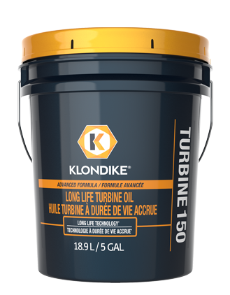 KLONDIKE Long Life ISO 150 Turbine oil are advanced, specialized fluids designed to provide exceptional lubrication and cooling benefits for industrial turbine systems where the highest quality rust and oxidation inhibited lubricants are required. Designed and recommended for use in turbine systems operating on steam or gas as well as a high temperature bearing lubricant and coolant. This oil is formulated to meet the demands of non-geared steam, hydro-electric, and gas turbines as well as a bearing lubricant. KLONDIKE Long Life ISO 150 Turbine oil protects vital equipment parts from rust and corrosion both during operational service and when equipment is idle making this fluid extremely versatile. In addition, this product passes the ASTM-D-943 Turbine Oil Stability Test by more than 10,000 hours indicating its ability to provide extremely long service life