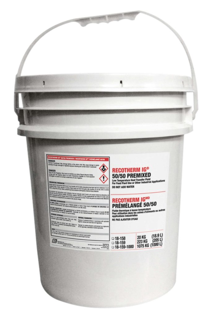 Recochem Inc. offers superior ethylene glycol based Heat Transfer Fluids designed to meet the demands of today’s process systems. RECOTHERM IG contains specially formulated inhibitor packages to help prevent corrosion and extend the life of the fluid. Ethylene glycol based fluids are the first choice for heat transfer applications because of their higher heat transfer efficiency and better overall low temperature properties. All RECOTHERM IG heat transfer fluids come in concentrate or pre-diluted solutions, are biodegradable and will not concentrate in water systems.